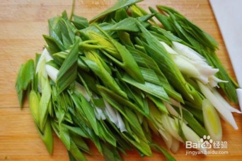 把蒜苗摘好,洗净切斜段。