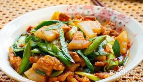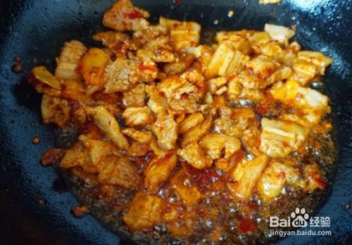放进五花肉下锅翻炒。