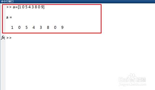 第二步matlab命令行窗口输入a=[1 0 5 4 3 8 0 9],按回车键,创建一个a数组,如下图所示: