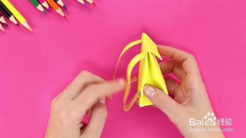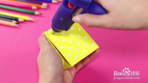 在背面粘上书包的袋子。
