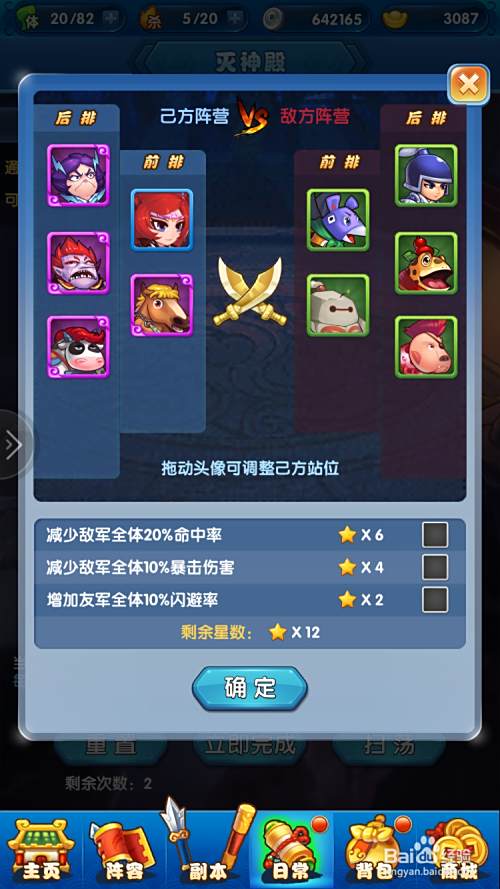 挑战每隔5关可以使用获取到的星进行一次属性加成,挑战之前还能够进行阵型调整,合理的阵容和阵形能够更好的挑战。