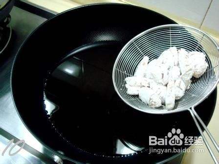 10油锅烧六七成热,倒入虾段用中火开始炸制。