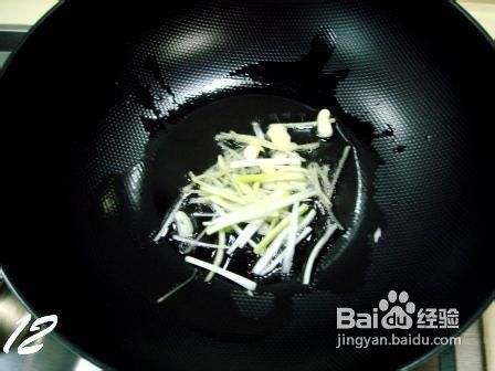 12炒勺上火烧热,放入少许底油爆香葱姜蒜。