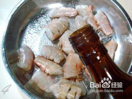 4滴入几滴绍兴黄酒,然后用手抓匀腌制10分钟。