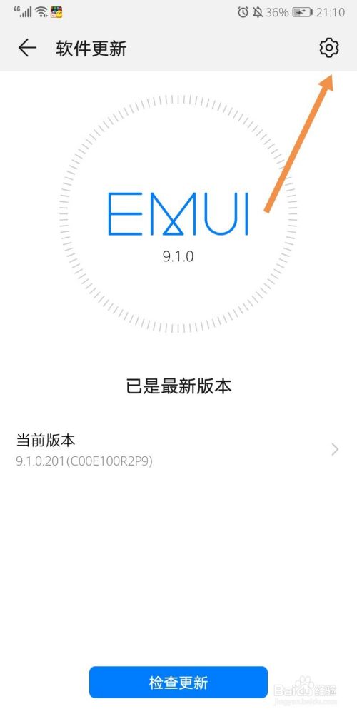 进入到软件更新界面之后,点击右上角的齿轮图标。
