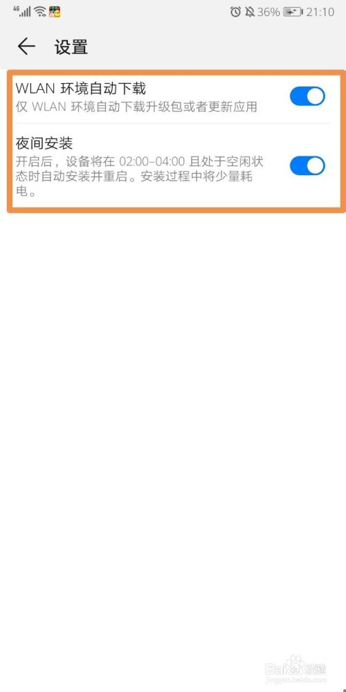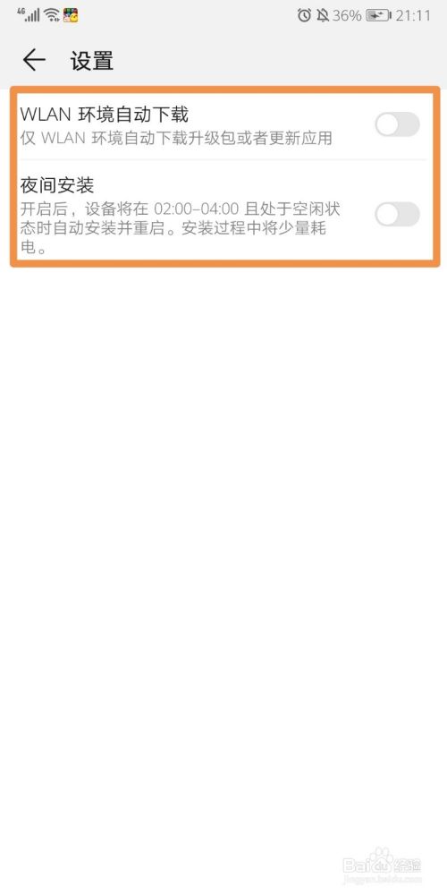在设置中找到WLAN环境自动下载和夜间安装两个选项。