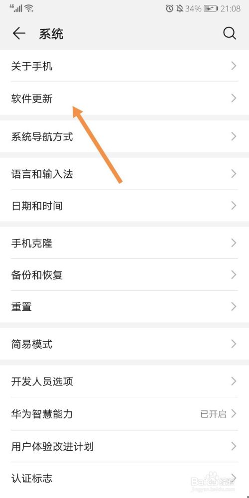 3、 打开系统之后找到软件更新,点击这个选项进入。