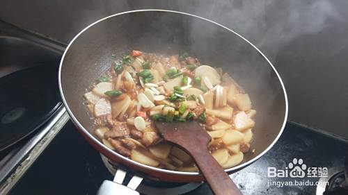 如图,加入适量酱油、生抽、香醋和少量清水,继续烧三分钟。