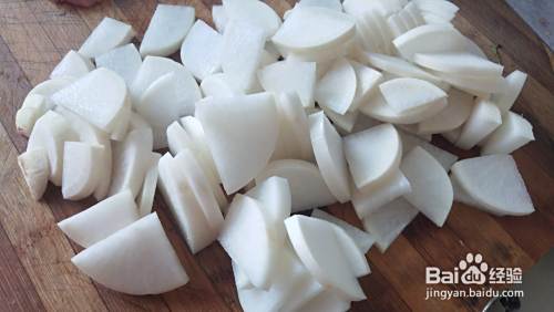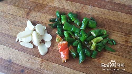 如图,将新鲜的辣椒、大蒜、白萝卜洗净后切好。