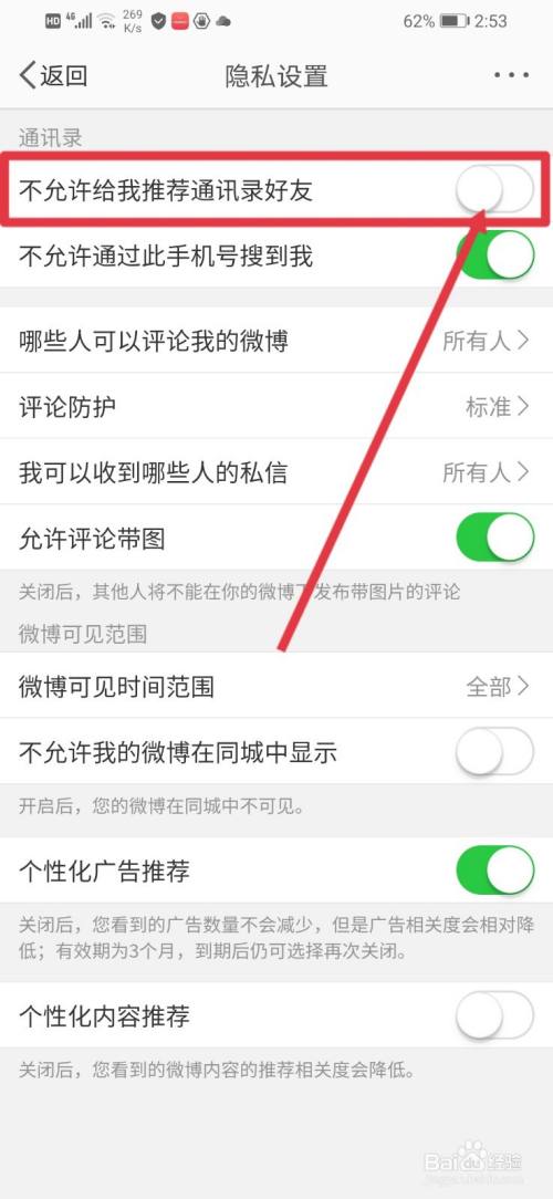 来到隐私设置,然后把【不允许给我推荐通讯录好友】的按钮开启即可。