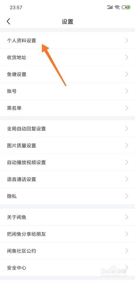 然后点击个人资料设置。