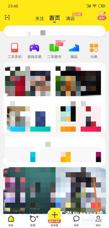 进入闲鱼首页以后,点击我的。