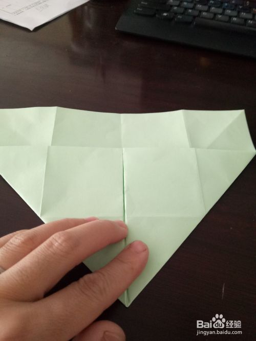 展开后根据折痕三角形两面对折