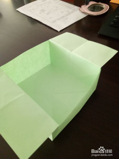 从上面拉开,将下面的角压平,小的收纳盒就好了