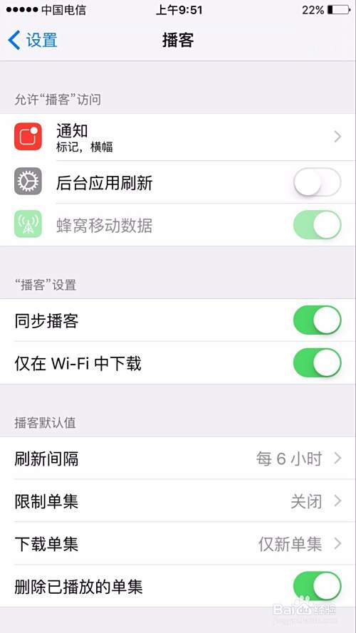 苹果手机可以通过以下方法来设置播客的刷新间隔。