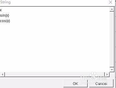4、本经验将属性值编辑为x,sin(x),cos(x),没错,本经验绘制的图像就是这三个函数的图像
