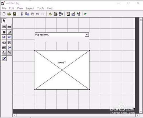 2、点击ok,将会创建一个GUI界面,在界面左边选择所需要的控件,本经验选择弹出式菜单和坐标轴两个控件