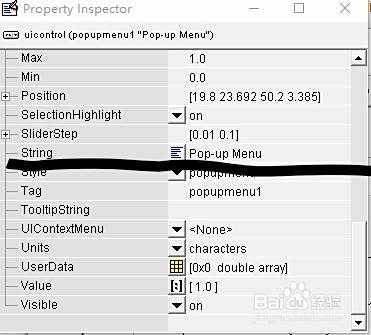 3、双击弹出式菜单,将会弹出一个小窗口,找到其中的string,改变其属性值。
