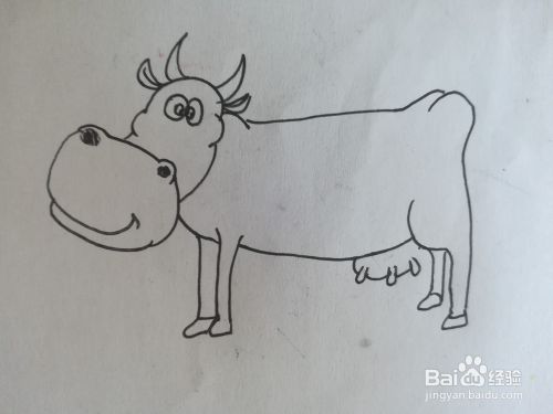 首先用碳素笔画出奶牛的鼻子和嘴巴