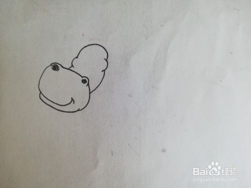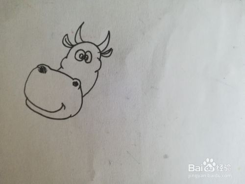 第三步画出奶牛的眼睛和耳朵以及牛角