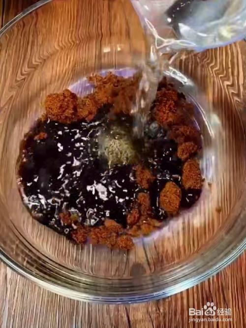 100克红糖中加入270克开水,搅拌融化