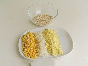 1.先准备煮粥的材料,这里有燕麦片,棒渣,大米和玉米面。