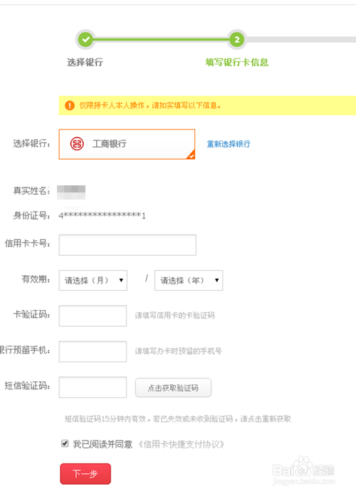 注:目前并不是所有的信用卡都支持,小编的农行信用卡就暂时不支持了
