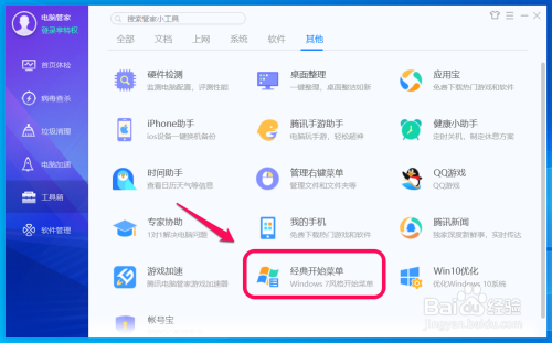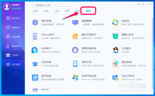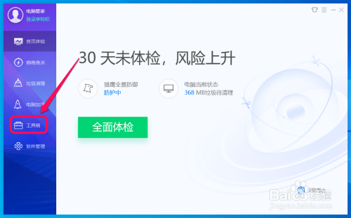 运行电脑管家,点击窗口左侧的【工具箱】;