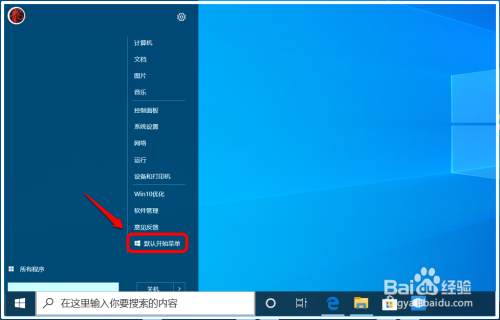 我们点击默认开始菜单后,即可将Windows 7系统经典菜单界面切换为Windows 10系统菜单界面。