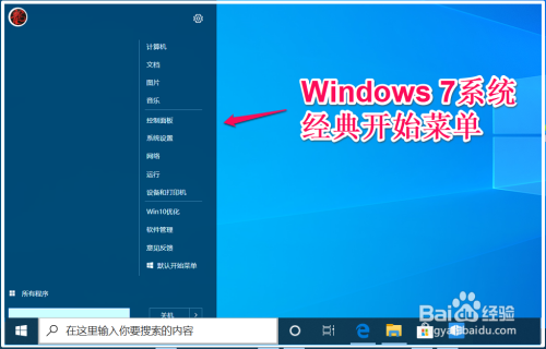 第二步:将Windows 10系统菜单界面切换为Windows 7系统经典菜单界面