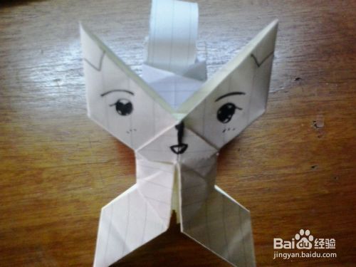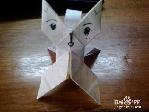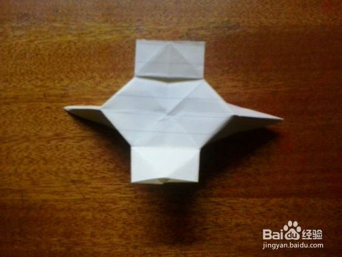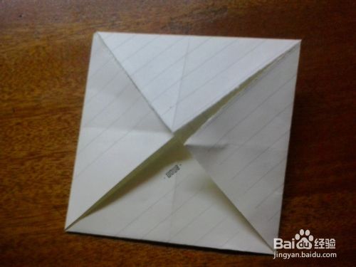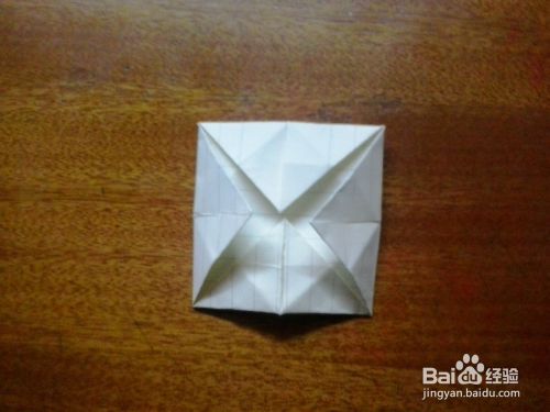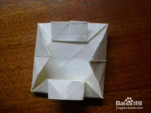 第三步:把其中对着的两个角往上提拉成长方形状,然后再把两个角提起来,详情看下图