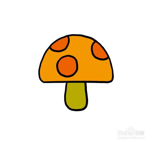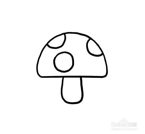 在半圆内画出一个圆形和两个半圆,一朵蘑菇就画好了。
