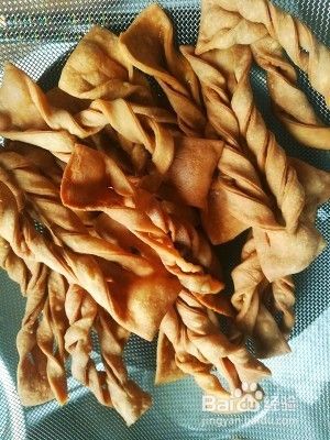 锅里放油,小火把卷好的排叉放进去,一个一个放,别粘一起。一会就都飘起来了。不用管它,等下面变颜色了用筷子翻个。注意火不要太大,一直中小火。