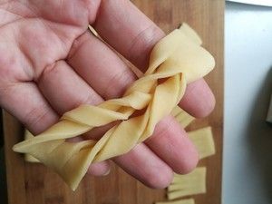 把面擀成大方片,尽量薄一点,和饺子皮差不多厚度。