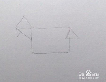 画一个长方形做老山羊的腹部,再画一个三角形做老山羊的尾巴。