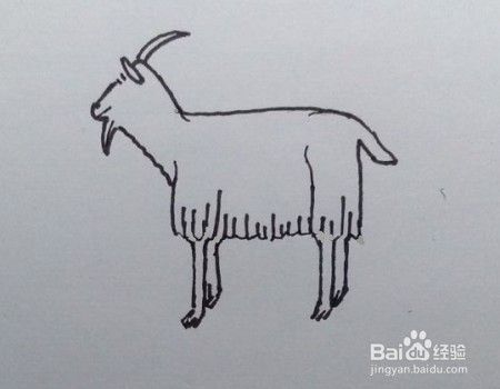 用中性笔勾画老山羊的头、颈、腹部和尾巴。