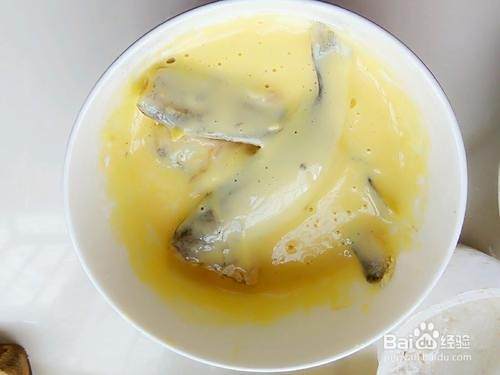 将小鱼放入碗内沾满鸡蛋糊