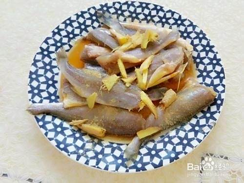 黄花鱼化冻去头去除内脏清洗干净。用料酒老抽胡椒粉姜片提前腌制入味