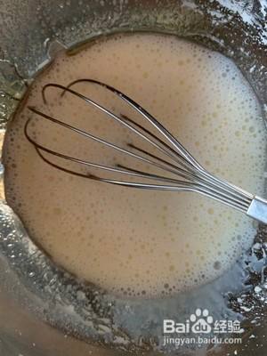 过筛,40g玉米油,150g纯牛奶用蛋抽搅拌均匀