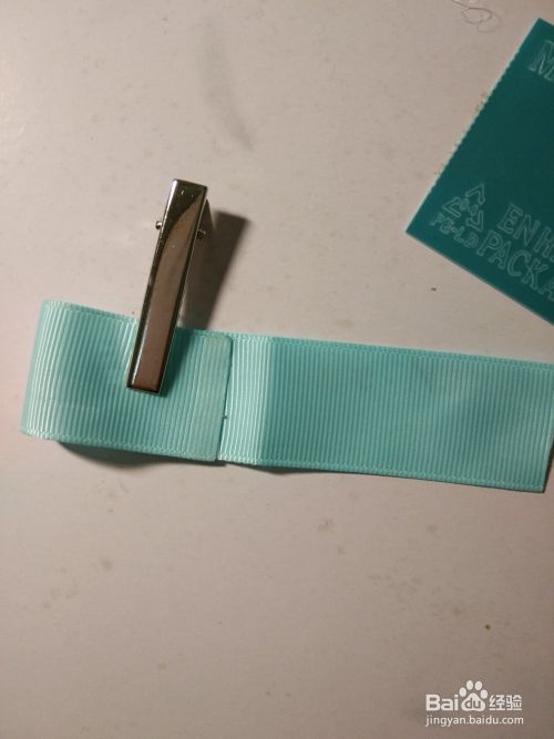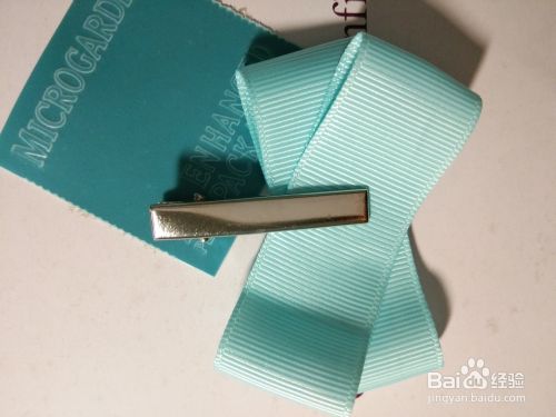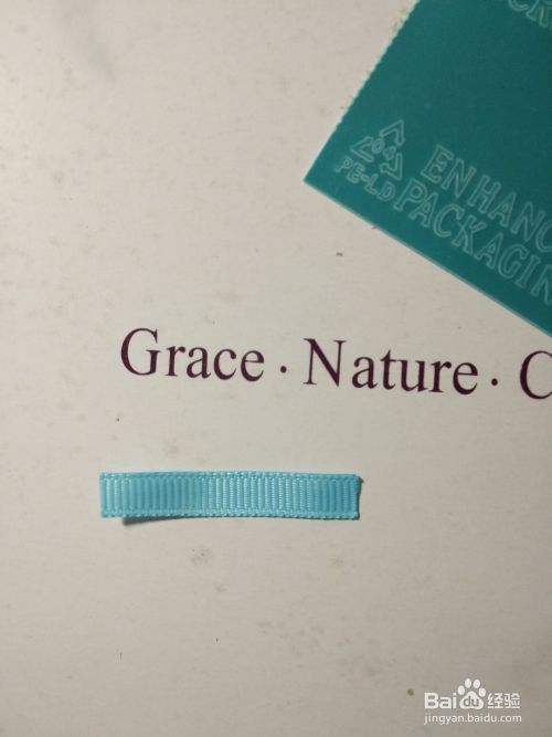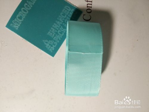 1、裁二节2.5CM*15CM兰色罗纹缎带,缎裁好后,用打火机把缎带的切口烫一下,防止缎带发线。