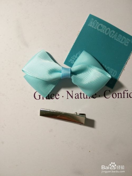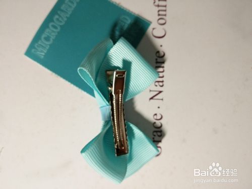 取准备好的鱼嘴夹,用胶枪粘合到蝴蝶结上。至此,一个色彩亮丽、清新且可爱的兰色蝴蝶夹就制作完成了。