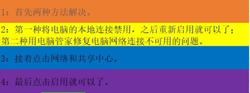 如果大家遇到电脑网络连接不可用的情况,可以通过以下两种方法解决。第一种将电脑的本地连接禁用,之后重新启用就可以了;第二种用电脑管家修复电脑网络连接不可用的问题。