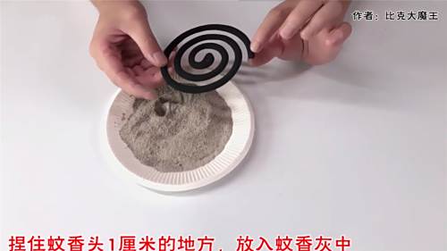 1方法一:捏住蚊香头1厘米的地方,放入蚊香灰中。
