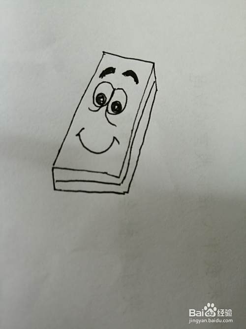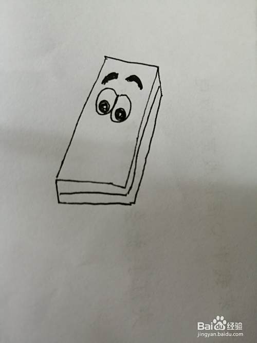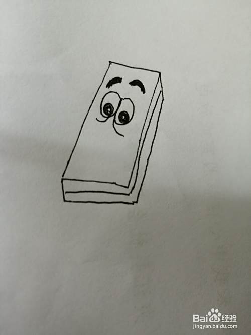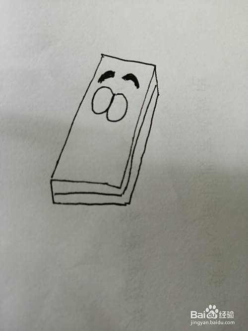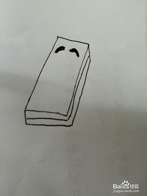 第三步,接着在四边形的里面画出浓浓黑黑的眉毛。