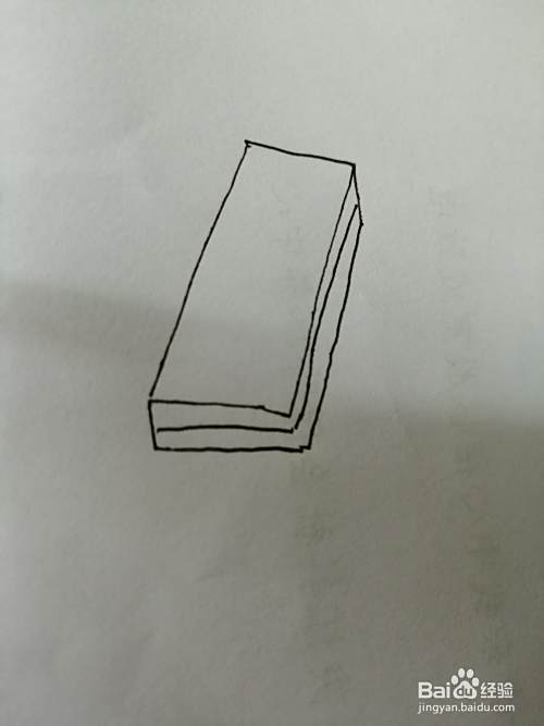 第二步,然后在四边形的下面画出一个横折线,在中间部分画出几条纹路。