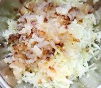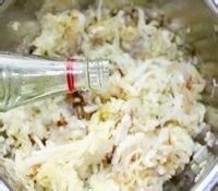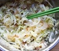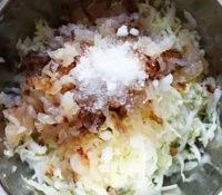白菜取中间菜帮略带叶的部分,切成丝,放入少许盐,抓拌均匀后静置10分钟。