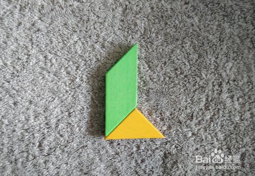 放上黄色三角形,上面放上平行四边形挨着,如图。