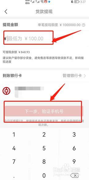 输入需要提现金额,获取验证码,输入验证码即可提现。