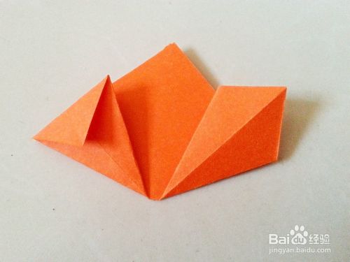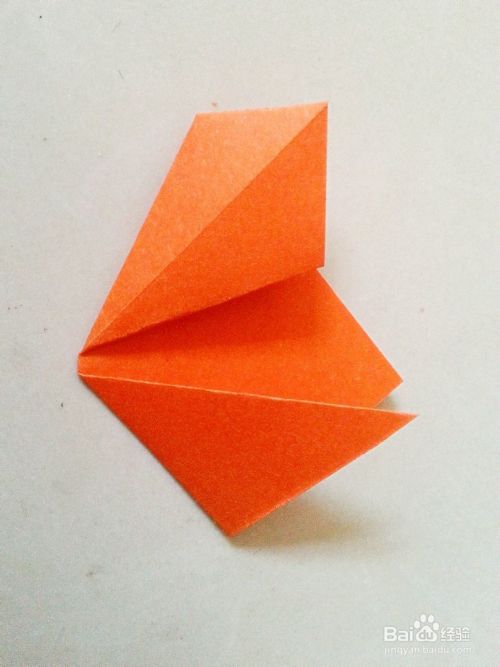把两个压平折好的边角外边的小三角(尖角)向内折回,两个角都以相同的方式折好!