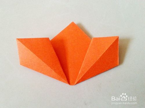 折好小三角后如图两边呈现两个大三角,把这两个大三角分别对称对折(如图)!